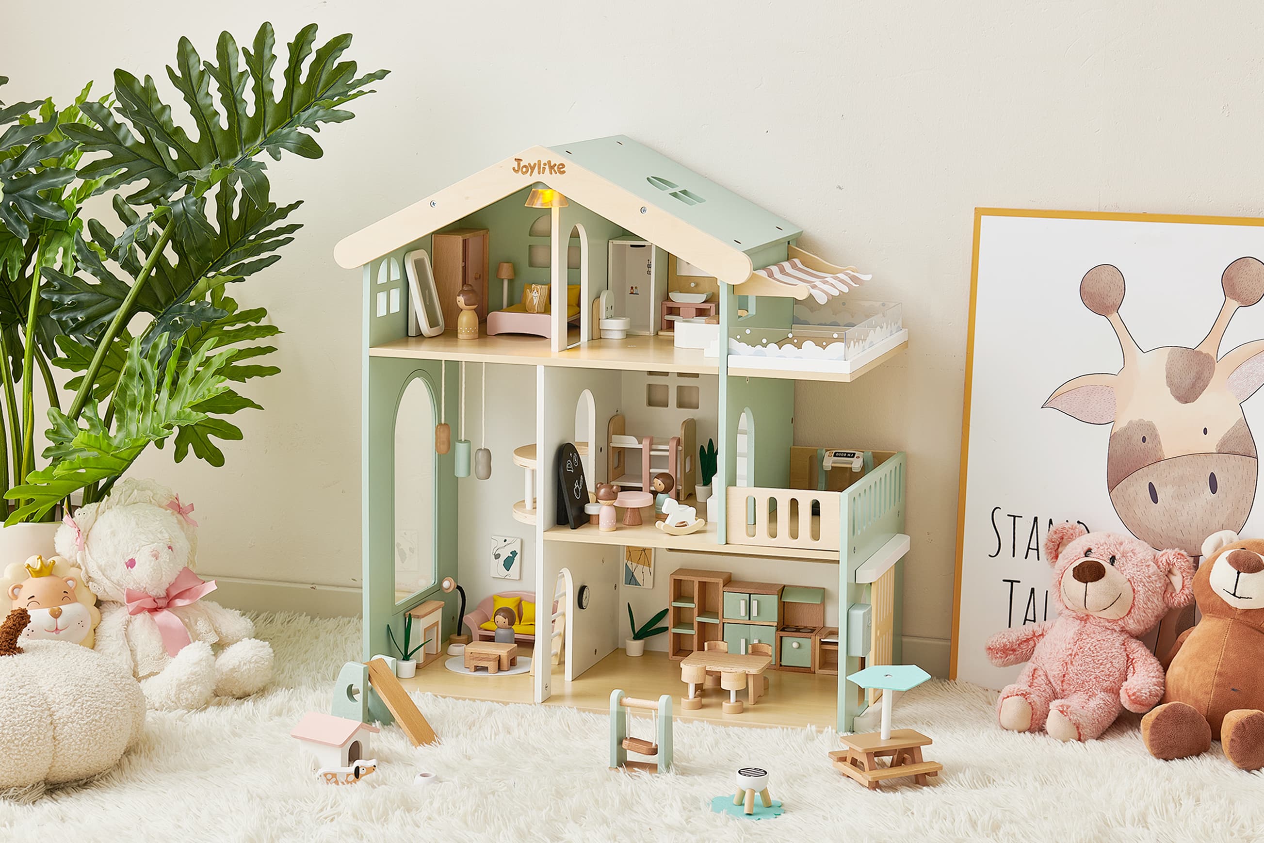 This is a really great quality dollhouse. I love the design. It's interesting, and unique shaped for really imaginative pretend playtime. The colors are non-obtrusive, and the design is kind of minimalistic, which actually leaves more room for a kid's imagination. One day it's an ordinary house, the next day it's a doll hospital. My kids have a lot of fun with it. It feels like a really sturdy nice build which makes it work well for younger and older kids.