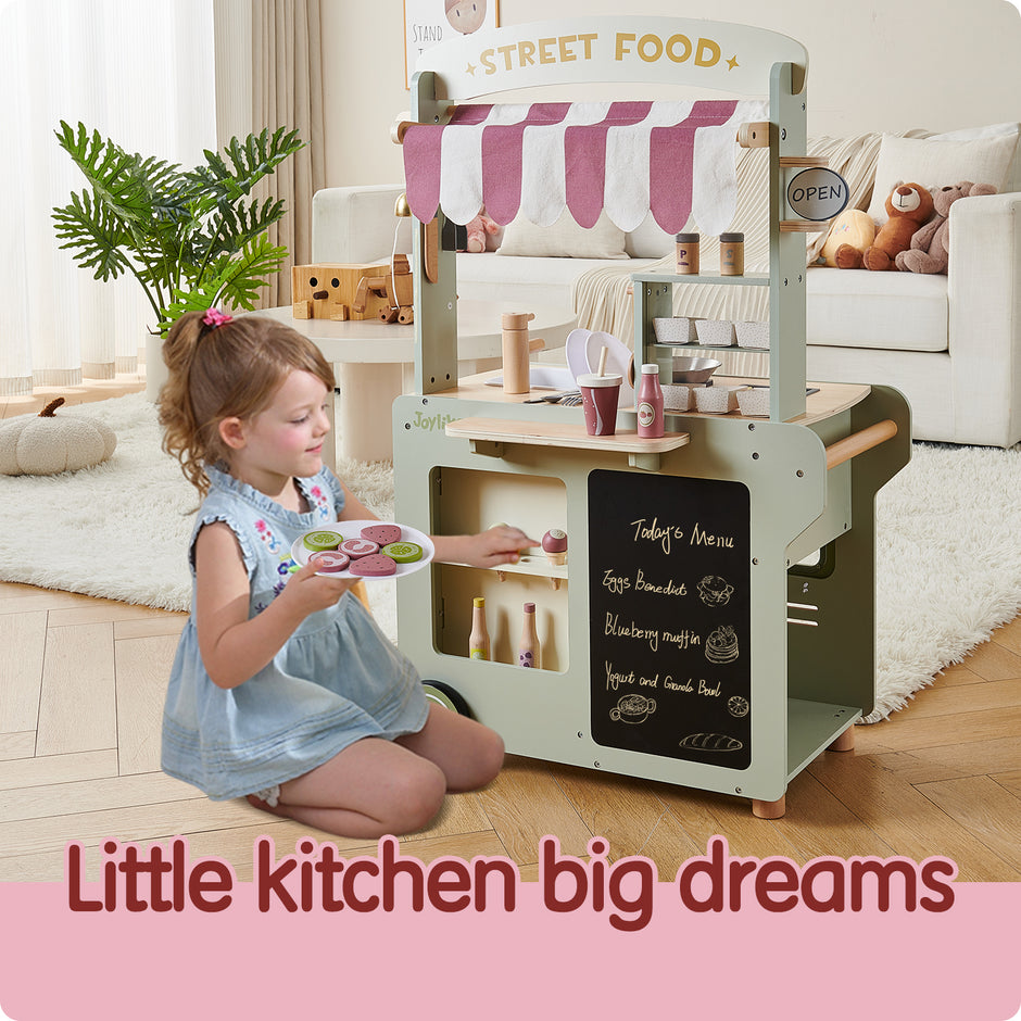 The Joylike Wooden Food Cart Kitchen Playset has been an absolute hit with my toddler! This 50-piece set includes everything a little one could need for imaginative pretend play—fruits, vegetables, packaged foods, and even a shopping cart. The quality of the wooden pieces is excellent, with smooth edges and vibrant, non-toxic paint that gives the playset a fun and realistic look. The cart is sturdy and easy to move around, which is perfect for my child to “shop” for their favorite items. It’s a great way to encourage creativity, fine motor skills, and social play. This playset has provided hours of entertainment and is a fantastic gift for young kids. Highly recommend it!