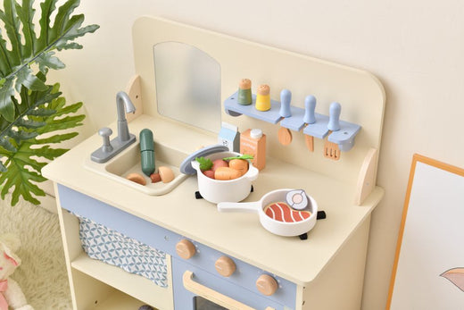 This wooden play cart is perfect for pretend play! With 50 colorful pieces, kids can explore being chefs or shopkeepers. The built-in sink and ice maker add extra fun and realism to their play. The sturdy wooden design feels durable and safe for little hands. Kids love using the cart to "serve" meals or stock up their pretend grocery store. The details, like the shelves and interactive parts, make it extra engaging. It’s a great way to encourage creativity, role-playing, and social skills. This set offers hours of fun for kids aged 3 and up!